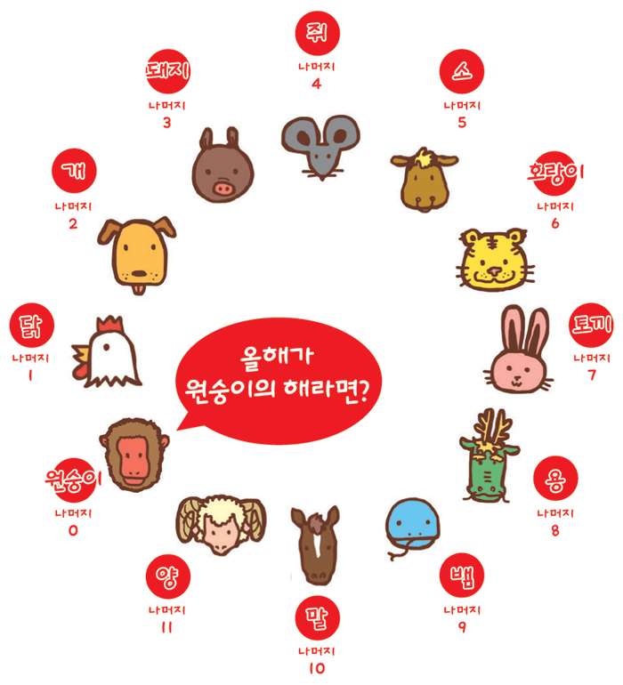 - 아래 표에서 나머지에 해당하는 띠를 확인합니다.